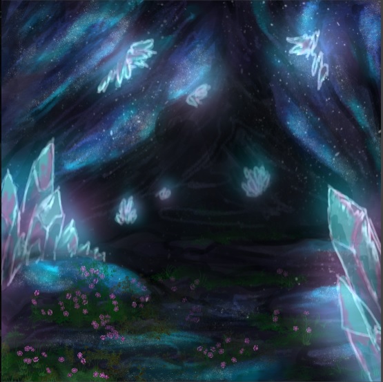 You find yourself in a beautiful cavern- the only light is coming from these illumniated crystals that surround you- its so quiet you think you can hear them singing a low resonating tone.
